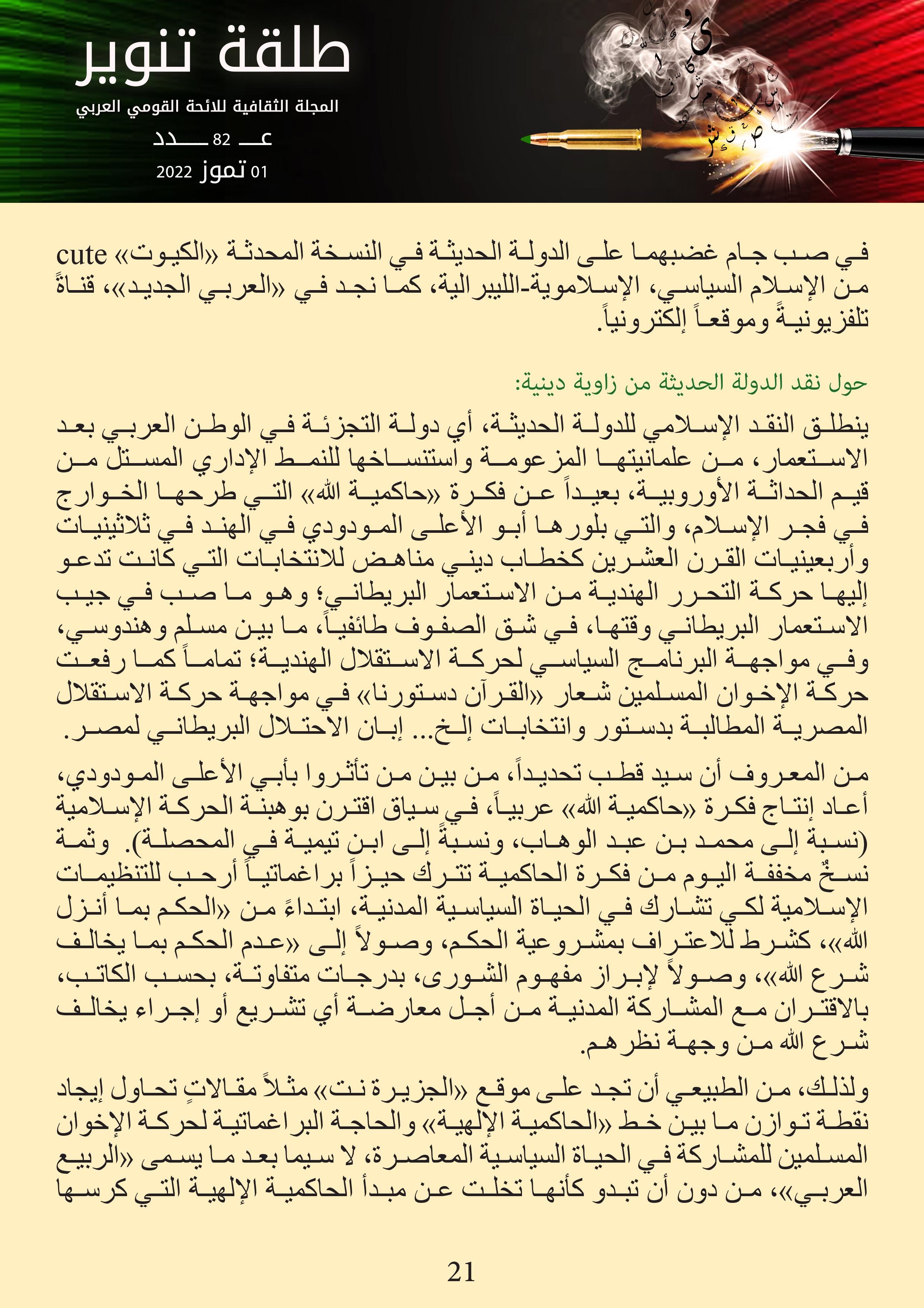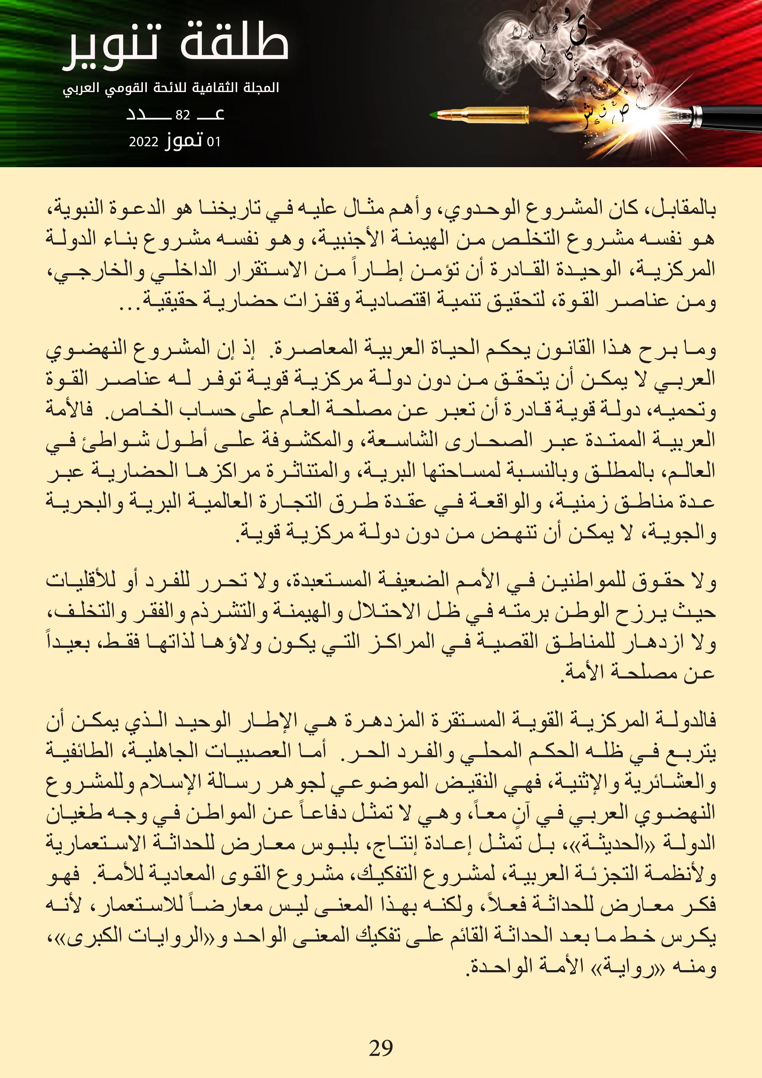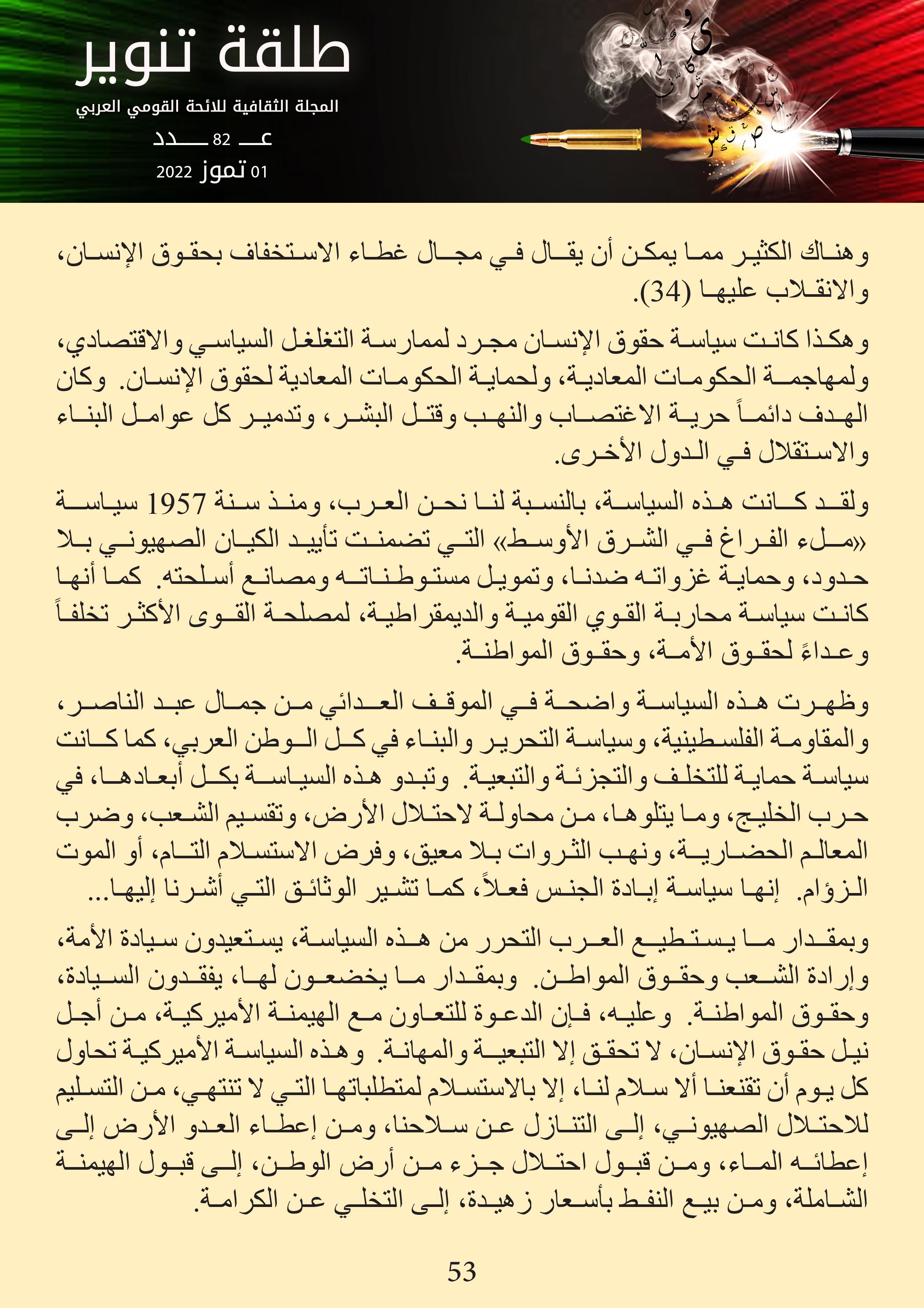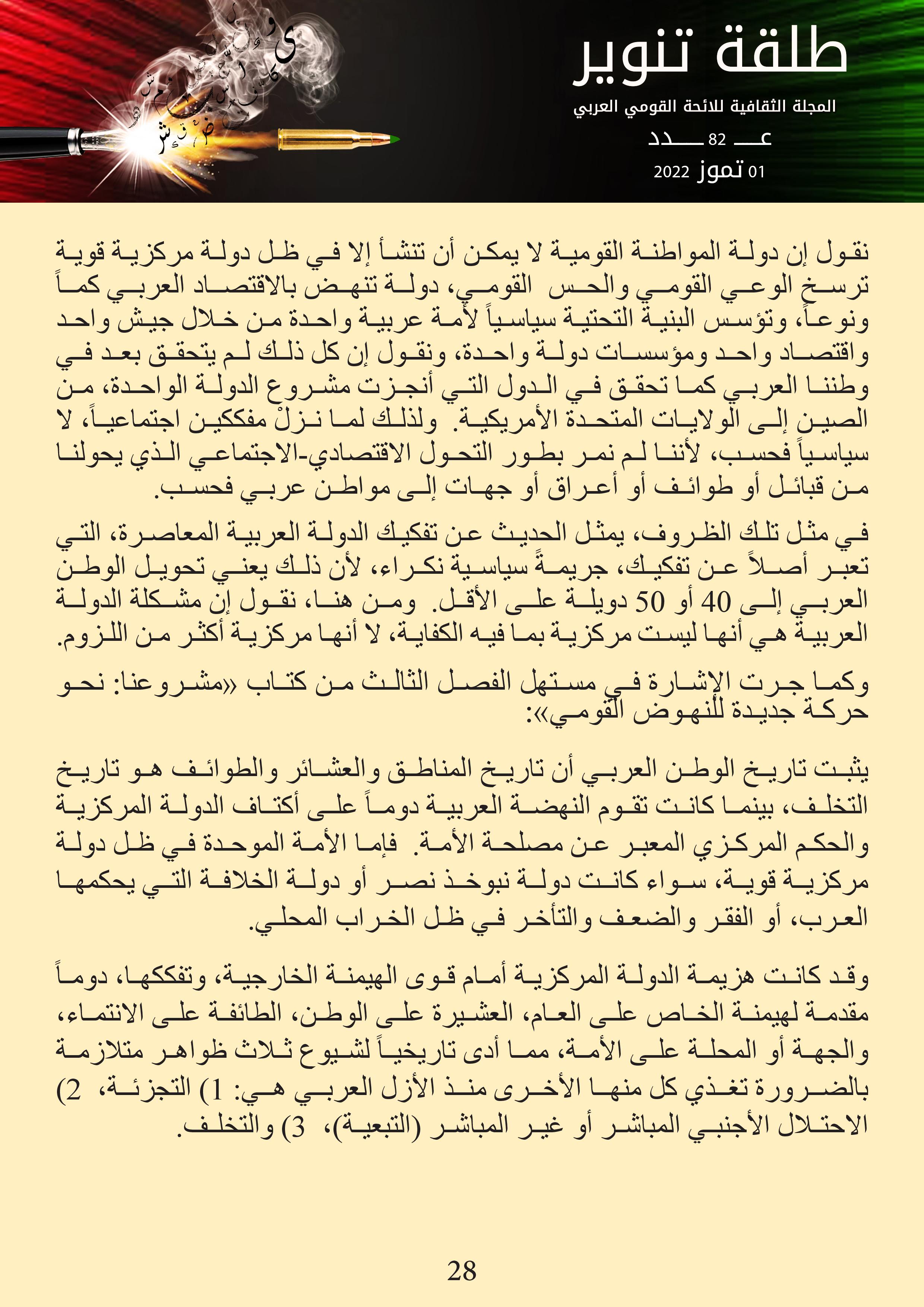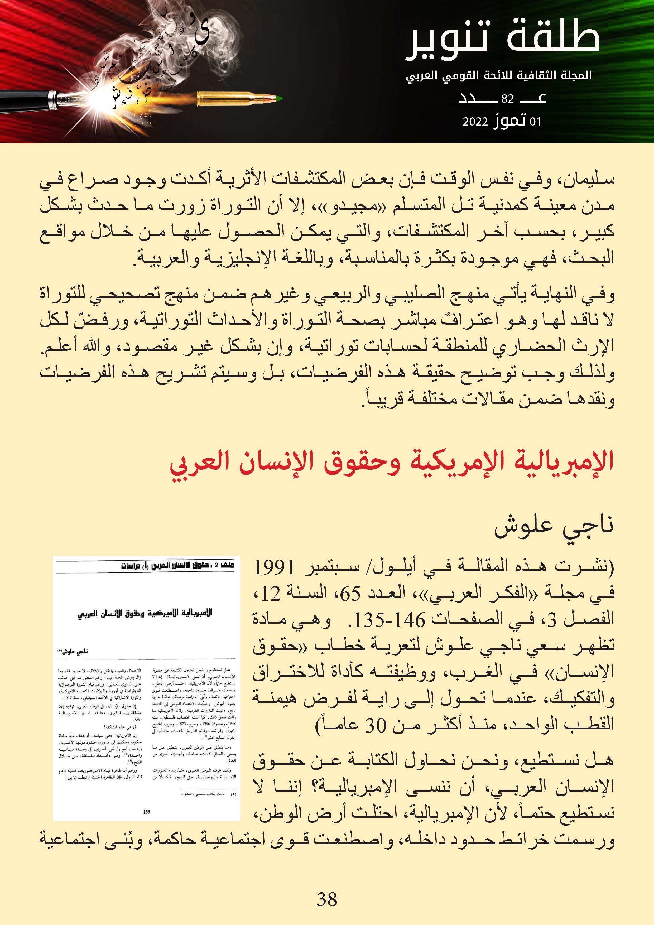 المجلة الثقافية للائحة القومي العربي – عدد 1 تموز 2022