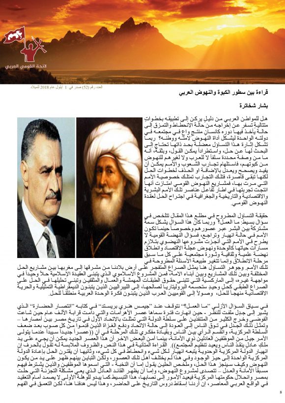 المجلة الثقافية للائحة القومي العربي… عدد 1 أيلول 2018