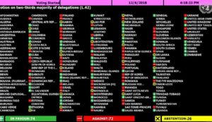 ثالثاً، نلاحظ أن تكتيك جعل مرور القرار يتطلب أغلبية الثلثين أتى أكله، وكان العامل الأهم في إفشاله، وهنا لا بد من الانتباه إلى أن بعض الدول التي صوتت مع تأييد مقترح جعل مرور القرار يتطلب أغلبية الثلثين صوتت مع القرار الأمريكي، أي أنها وافقت على جعل مرور القرار أصعب بكثير، ثم صوتت معه، لكي لا تدخل في صدامٍ مع الإمبريالية والصهيونية، ومن هذه الدول مثلاً الأرجنتين والبرازيل واليابان… ولنلاحظ بالمقابل أن دولاً مثل أفغانستان وأنغولا وأوغندا وتنزانيا والإكوادور والسلفادور صوتت مع رفع نسبة مرور القرار إلى الثلثين، ثم امتنعت عن التصويت عليه، أي أنها مهدت الطريق لرفضه، من دون أن ترفضه صراحةً، وهذا أمرٌ مهمٌ في قراءة خريطة التصويت على القرار، لأنه لعب دوراً مفصلياً بإفشال القرار الأمريكي.