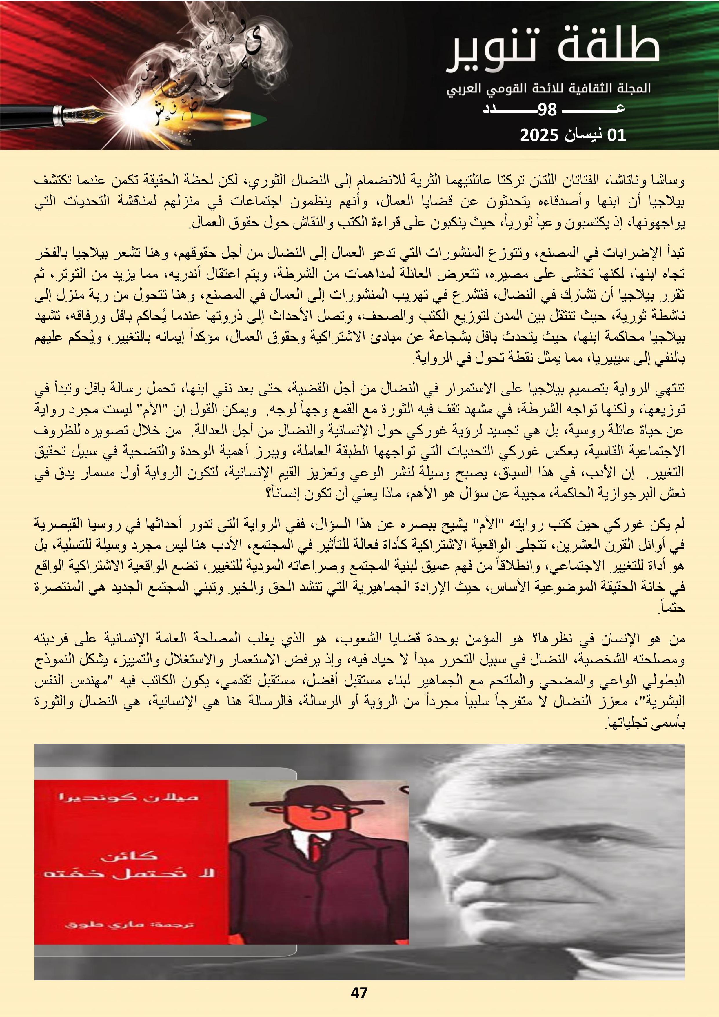 المجلة الثقافية للائحة القومي العربي - عدد 1 أيلول 2025